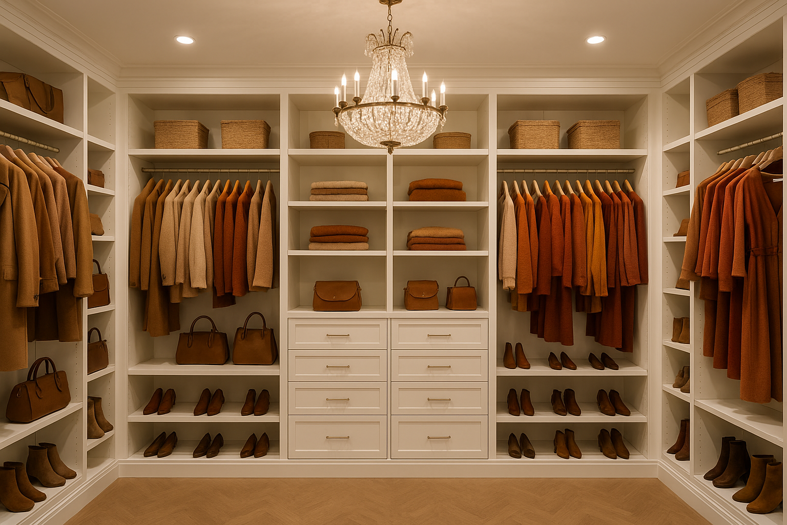 효율적인 옷장 관리의 또 다른 방법은 색상별 정리입니다. 어두운 톤이 많은 가을 패션 속에서 색상 그룹을 구분하면 코디할 때 훨씬 직관적입니다. 예를 들어, 베이지·브라운·카키 같은 가을 무드 컬러를 한쪽에, 블랙·네이비 계열은 다른 쪽에 배치하면 전체적인 스타일링이 간단해집니다.
