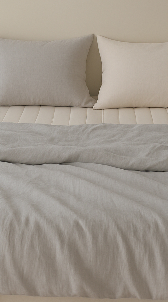 리넨은 땀을 빠르게 흡수하고 배출하는 기능이 뛰어난 천연 섬유입니다. 특히 장마철 고습도 환경에서도 잘 마르고 눅눅함이 덜해, 보송보송한 수면 상태를 유지하는 데 효과적이에요. 처음엔 약간 거친 감촉이 느껴질 수 있지만, 사용할수록 부드러워지고 통기성은 여전히 뛰어납니다. 퀄리티 높은 수면을 원하신다면 리넨 소재에 주목해보세요.