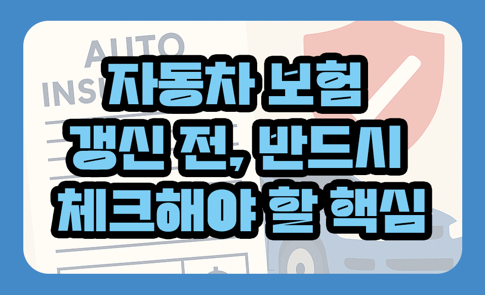 자동차를 소유하고 있다면 누구나 연 1회 이상 마주하게 되는 일이 바로 자동차 보험 갱신입니다. 보험 만기일이 다가오면 문자나 알림이 오곤 하지만, 매년 똑같은 보험사를 유지하거나 보장 내용을 잘 살펴보지 않고 넘어가는 경우가 많죠.
