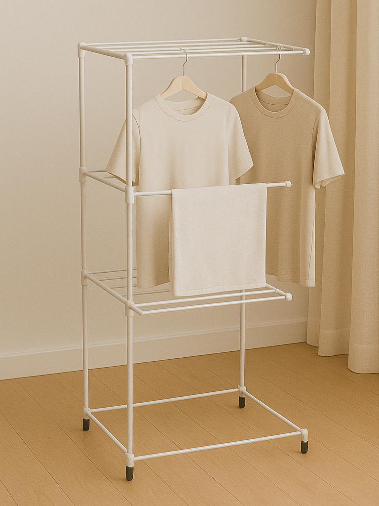 ☔️ 6. 실내 건조용 빨래건조대 + 보조 선풍기 조합