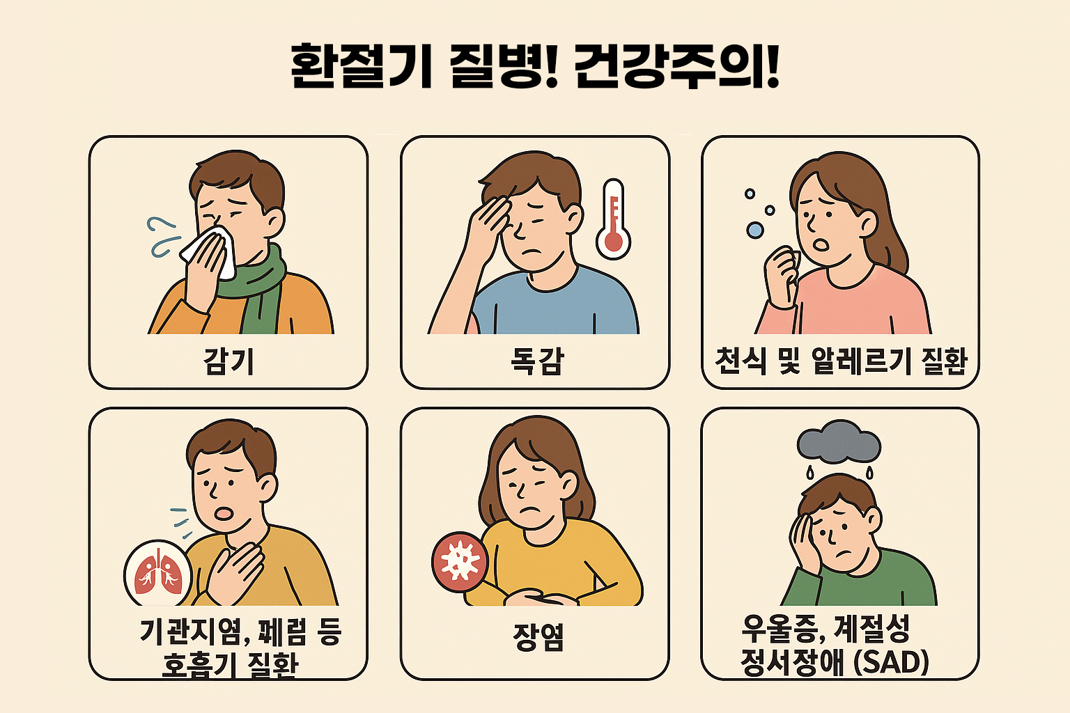 🌿 환절기 건강, 이렇게 챙기세요! 꼭 알아야 할 6가지 주의 질환과 예방법
